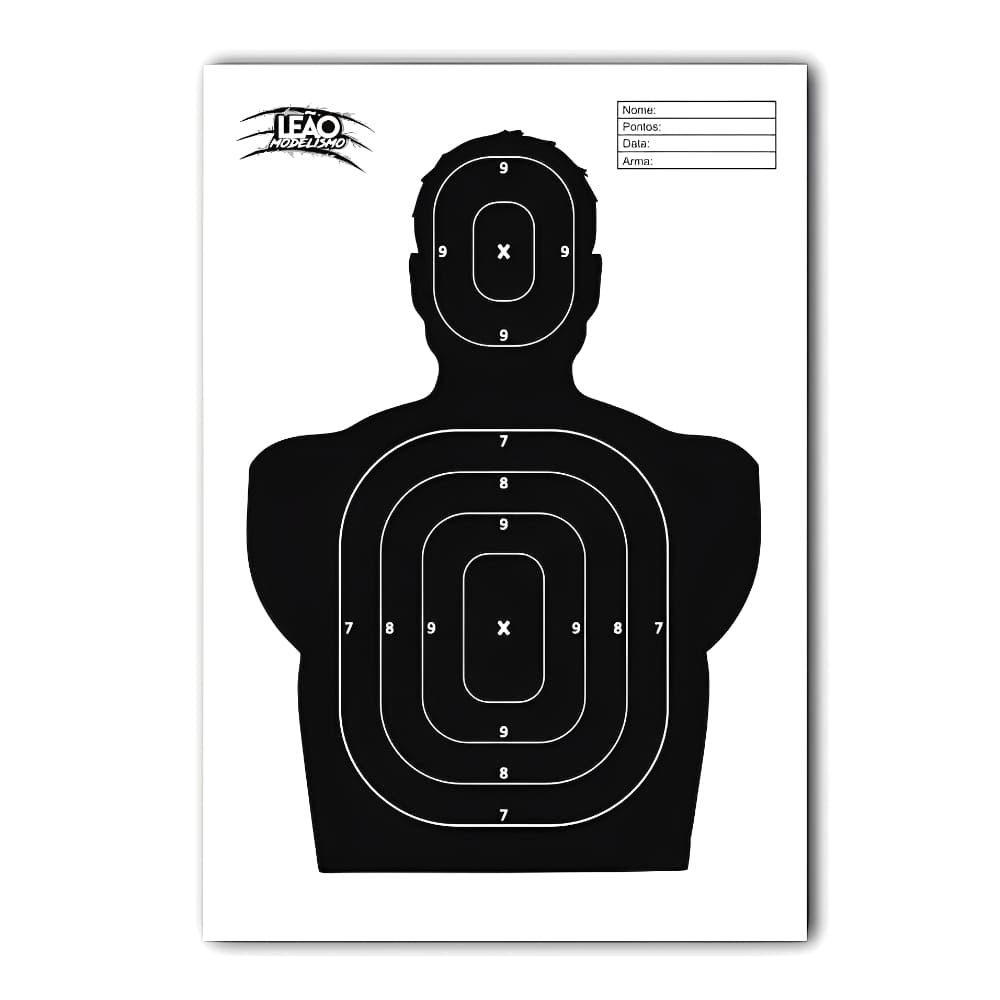 O Alvo de Papel Leão Modelismo é a opção perfeita para atiradores que participam ou promovam campeonatos de Tiro esportivo. Possui uma silhueta com diversos pontos específicos enumerados fazendo com que o atirador pratique de forma certeira os seus disparos.