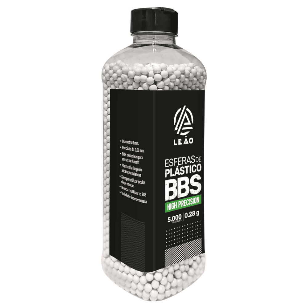 A embalagem conta com 5.000 unidades de BBs, sendo que todas elas passam por rigorosas etapas de controle de qualidade, afim de oferecer alta precisão e garantir eficiência em combates e treinamentos. De gramatura 0.28g e medindo 5.95mm/+-0.01mm, essas BBs são de alta precisão.