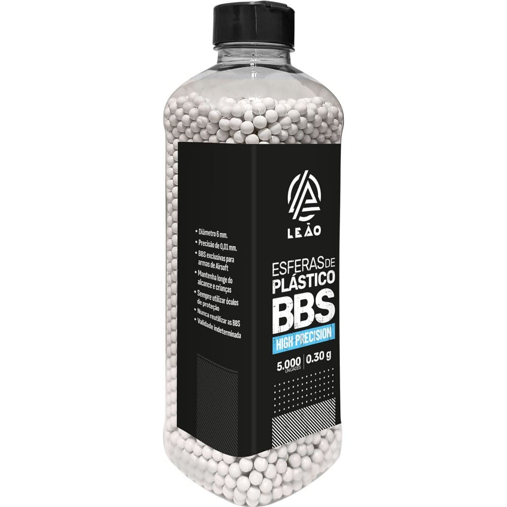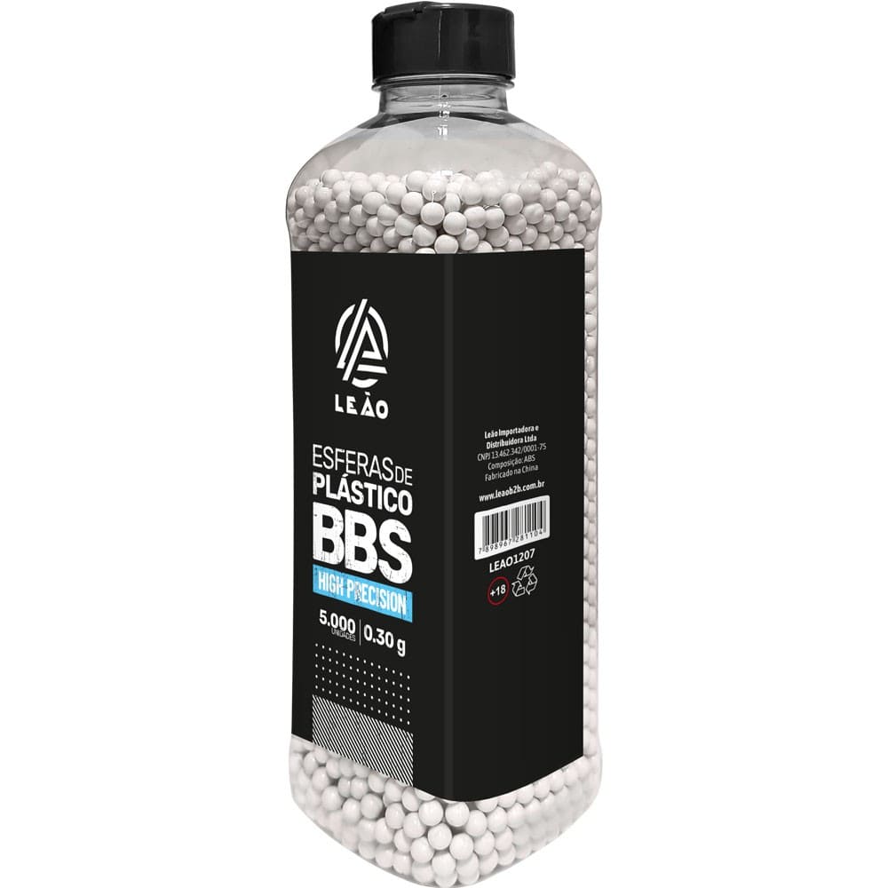 Esferas plásticas para airsoft no calibre 6mm. Indicado para qualquer airsoft devido a sua media gramatura. As munições para Airsoft devem sempre ser de extrema qualidade, isso vai garantir uma maior vida útil para sua AEG. A munição LEÃO garante uma enorme qualidade na hora do jogo, com um ótimo custo-benefício.