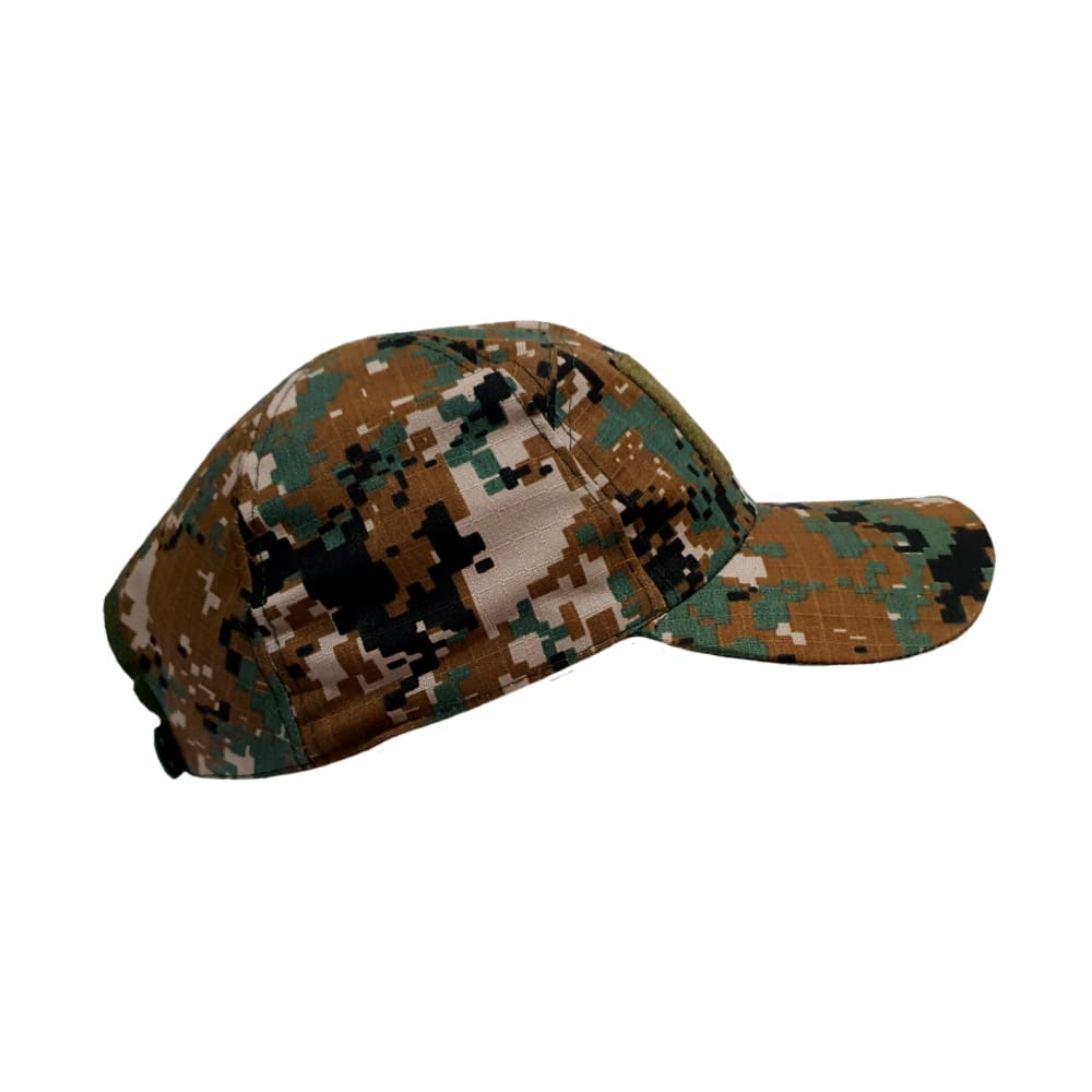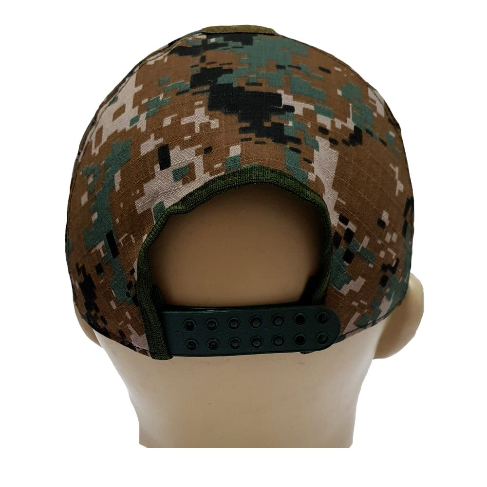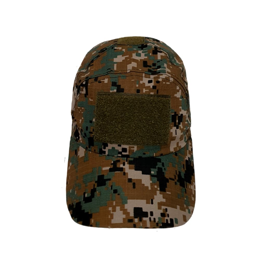 Confeccionado em tecido RIP STOP. Possui regulador de tamanho. Utiliza o tecido Rip Stop profissional militar, confeccionado com composição de 67% poliéster e 33% algodão com fios entrelaçados, criando um padrão de bloqueio a um eventual corte, evitando que o tecido seja desfiado. Sua principal característica é a durabilidade.