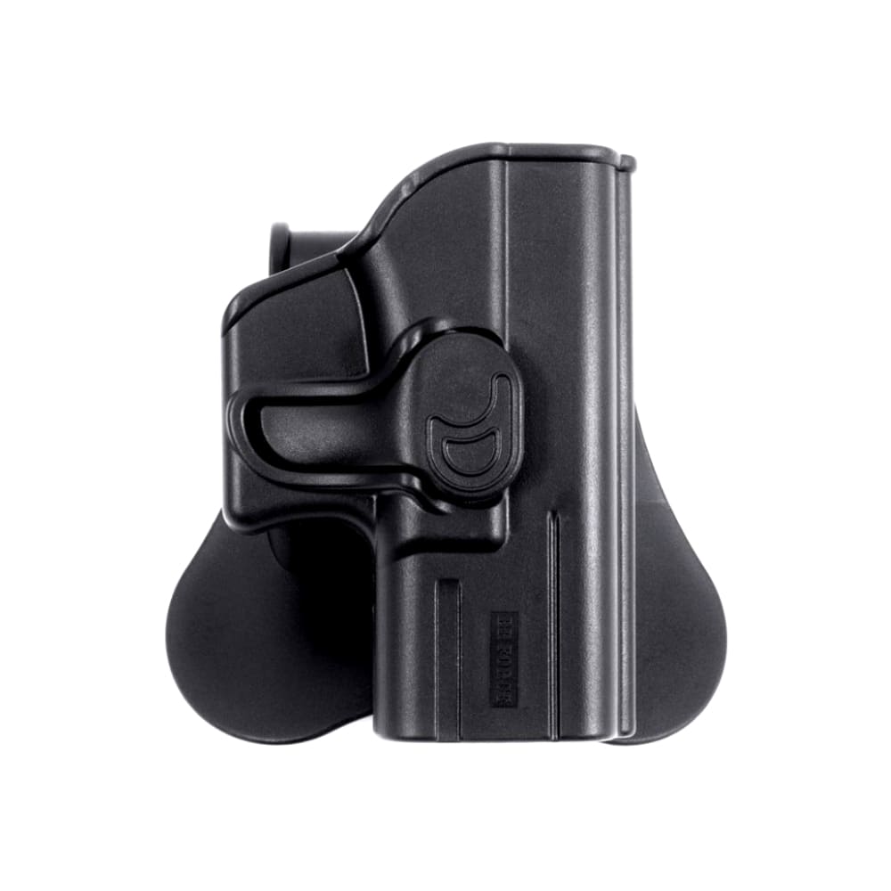 Permite a montagem em passador de cinto tipo clip e suporte de colete MOLLE. Acompanha chave hexagonal (allen) 4 mm, sendo compatível com os modelos Glock® G19, G23, G25 e G32. É o coldre administrativo ideal para quem busca segurança na retenção da arma e rapidez no saque.