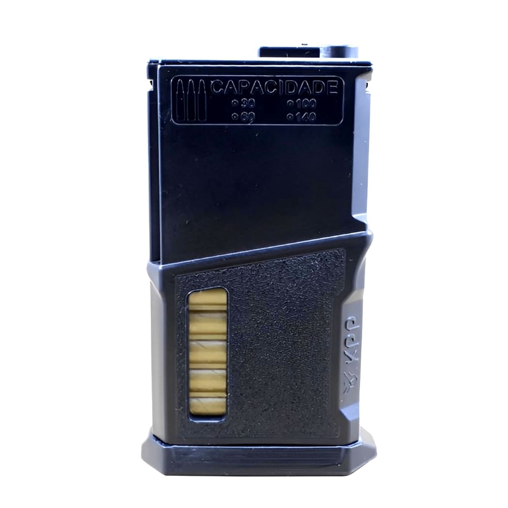 O magazine Multicapacidade, é uma criação da Kpp Airsoft, onde você poderá fazer o setup de 4 capacidades distintas. Este magazine poderá ser montado com 30, 60, 100 ou 140 Bbs (34, 64, 100 e 140), a fim de atender os mais diversos tipos de jogadores e regras de jogos. (veja o vídeo de como fazer o setup)