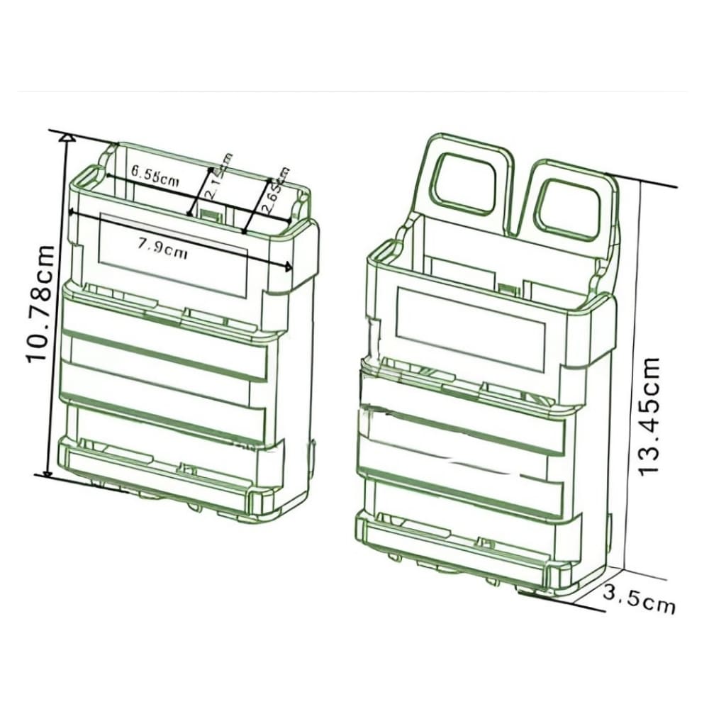 Com design molle, esse porta magazine conecta facilmente ao colete molle, cinto ou mochila. Além disso, reduz o tempo do ciclo de recarga, a ligeira torção desloca o compartimento para fora e abre facilmente para a recarga rápida.