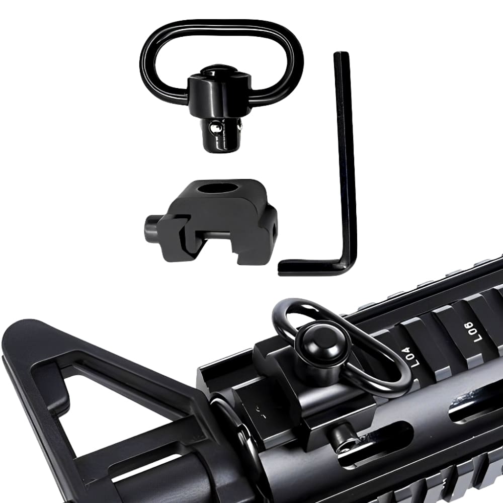 Construído em metal é uma solução fácil para prender a bandoleira em seu rifle.
